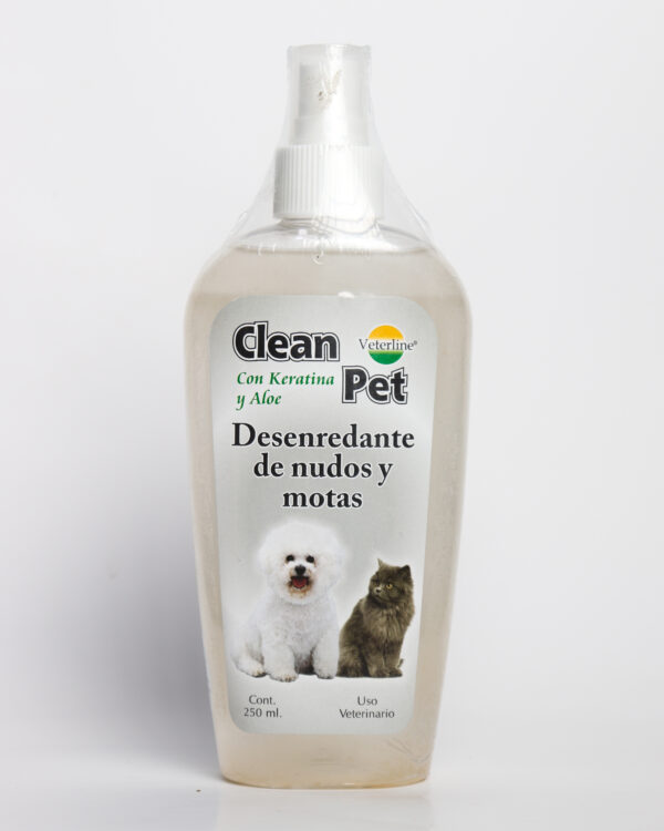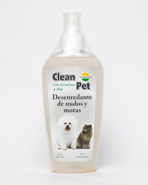Spray desenredante y suavizante no tóxico, con Keratina y Aloe Vera, desarrollado para fácil eliminación de nudos y motas. Perfecto para todo tipo de pelajes, facilita el peinado, deshace los enredos y evita las roturas. Elimina la electricidad estática del pelo gracia a su efecto acondicionador no graso. Rápido y fácil de aplicar. Los frecuentes lavados a los que sometemos a nuestra mascota para eliminar la suciedad y los malos olores, tienen un efecto negativo sobre su piel; esta se debilita, pierde su protección, la grasa habitual y el pelo se vuelve áspero, sin brillo y quebradizo; por ello se recomienda que se emplee lociones hidratantes y utilice productos diseñados especialmente para mascotas.